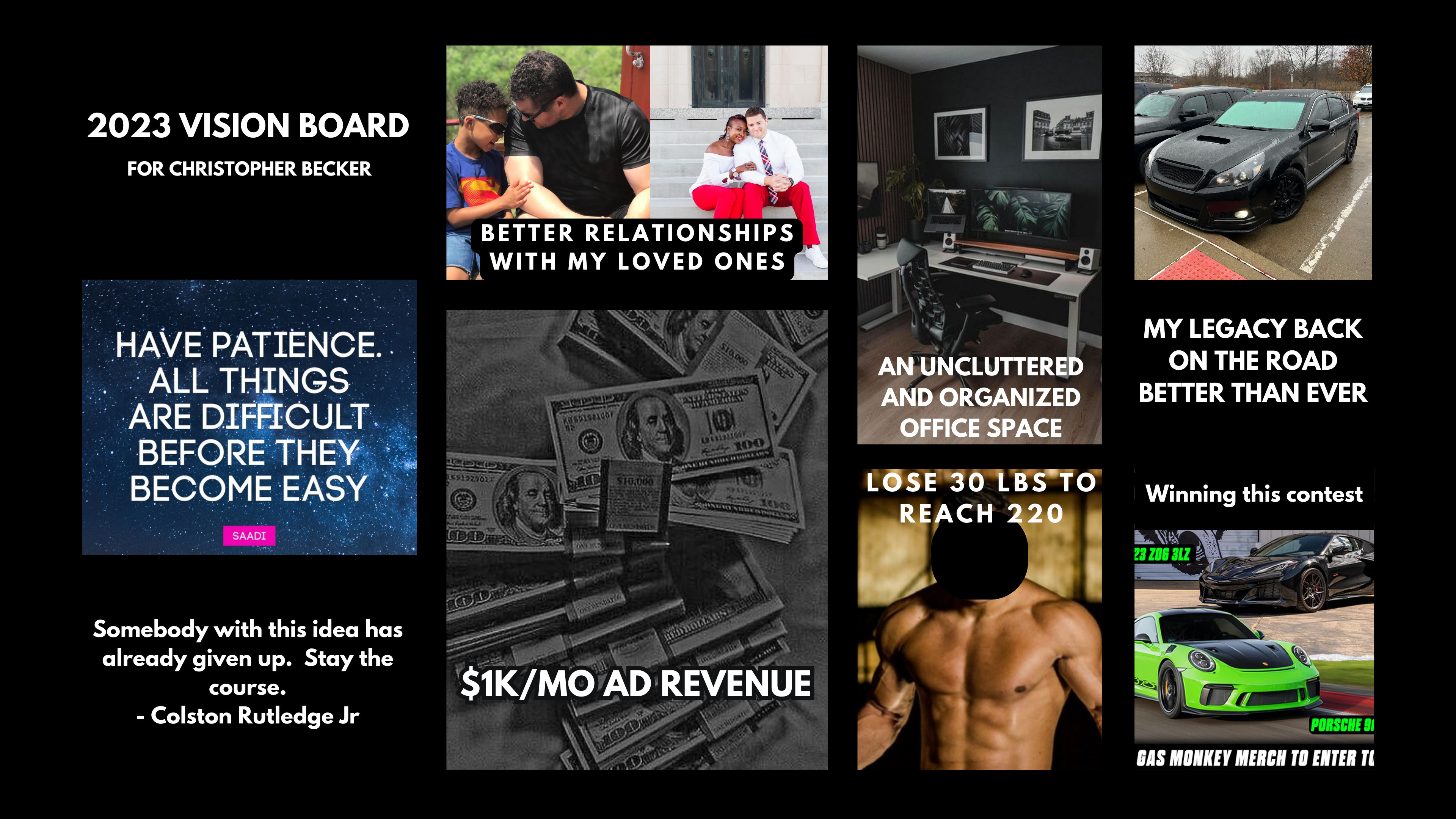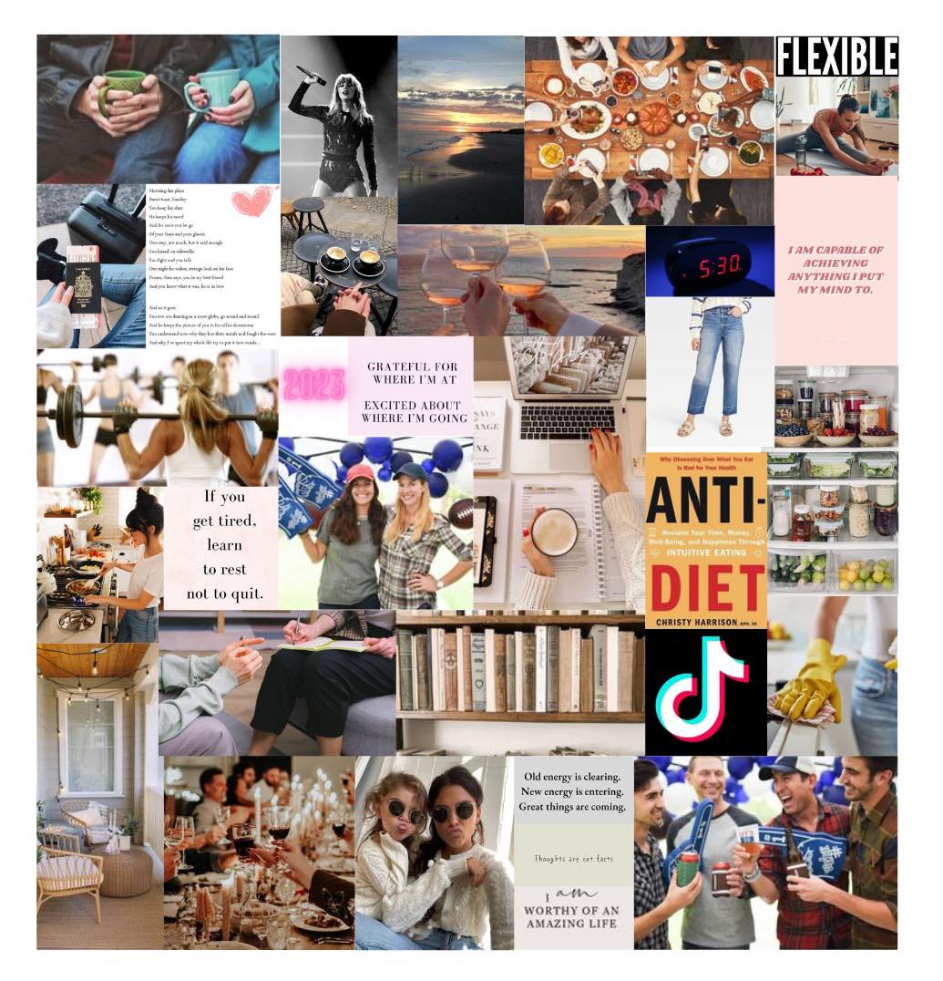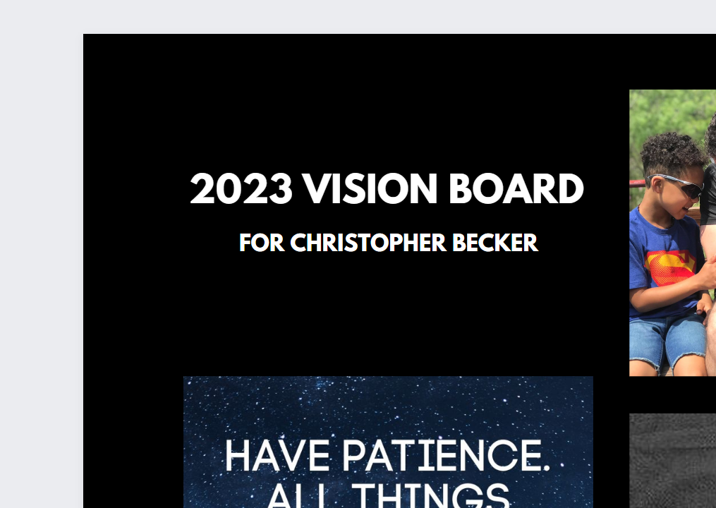 When I was doing this task, I looked to be as specific as I could with the pictures I used. One of my goals for 2023 was to lose 30lbs so I can reach 220lbs for the first time in a long time. I went so far as to look for a picture of a “220lb fighter” to use on my board. To make it specific, I blanked out the person’s face and I added a caption: “Lose 30 lbs to reach 220”. Some go as far as photoshopping their own face on the picture just to make it more real. I did not take it that far personally, but if you have a hard time imagining yourself in a certain “vision”, that might make it work better for you.