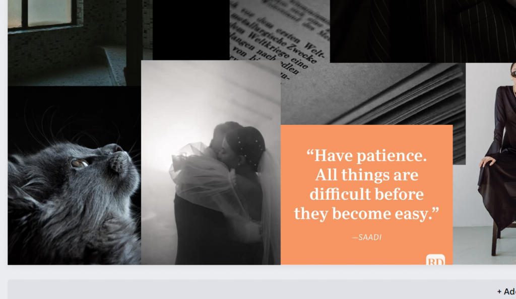 - If you’re adding quotes, you can go to Google Images and enter the quote you want to search for. This will usually provide you with a picture someone else has already made for that inspiring quote you chose. If you can’t find one to your liking, you can also add a picture box to your design, add a picture you like, and use the “Add a text box” button to add the quote manually.